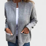 Oto kardigan z dzianiny bawełnianej Noelle - Twój nowy ulubiony kardigan na zimne dni. Ten kardigan łączy w sobie miękki ciepło z nowoczesnym i eleganckim wyglądem, który podnosi każdą stylizację. Idealny zarówno na casualowe dni, jak i na bardziej eleganckie okazje.