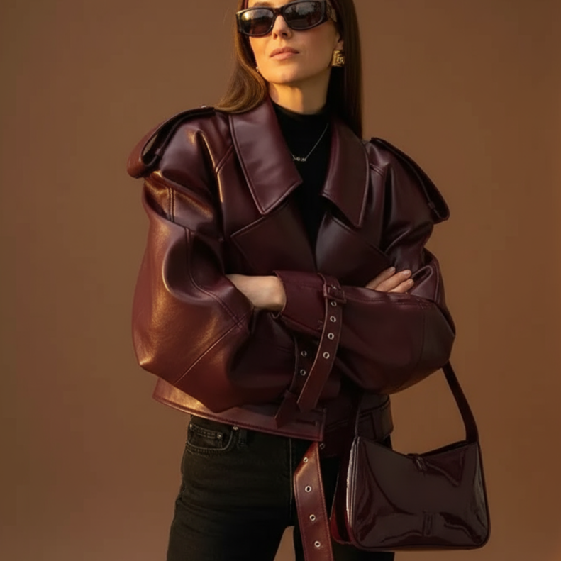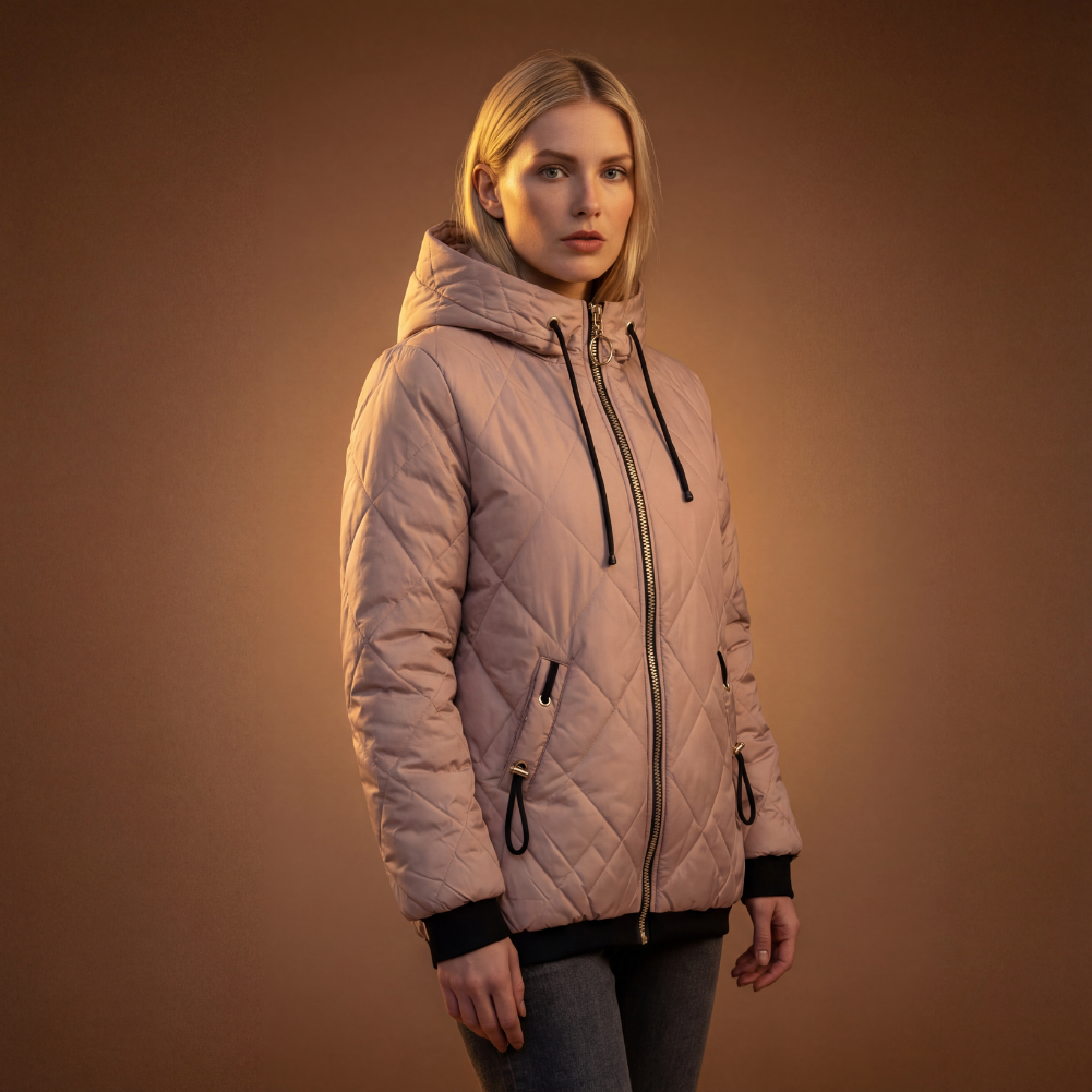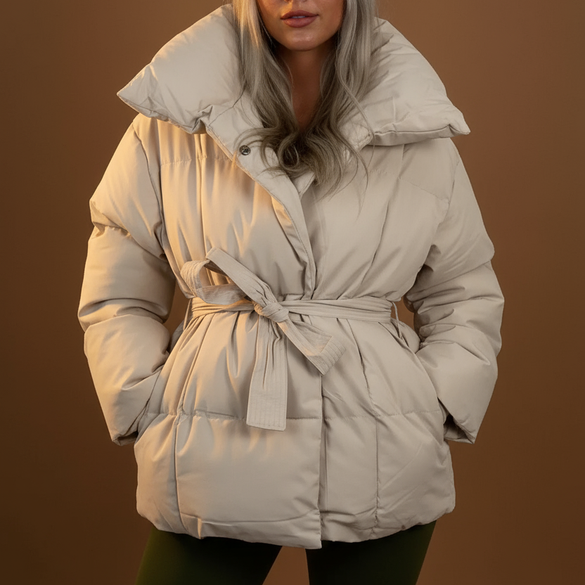 Magdalena - Pikowana krótka kurtka z paskiem w talii