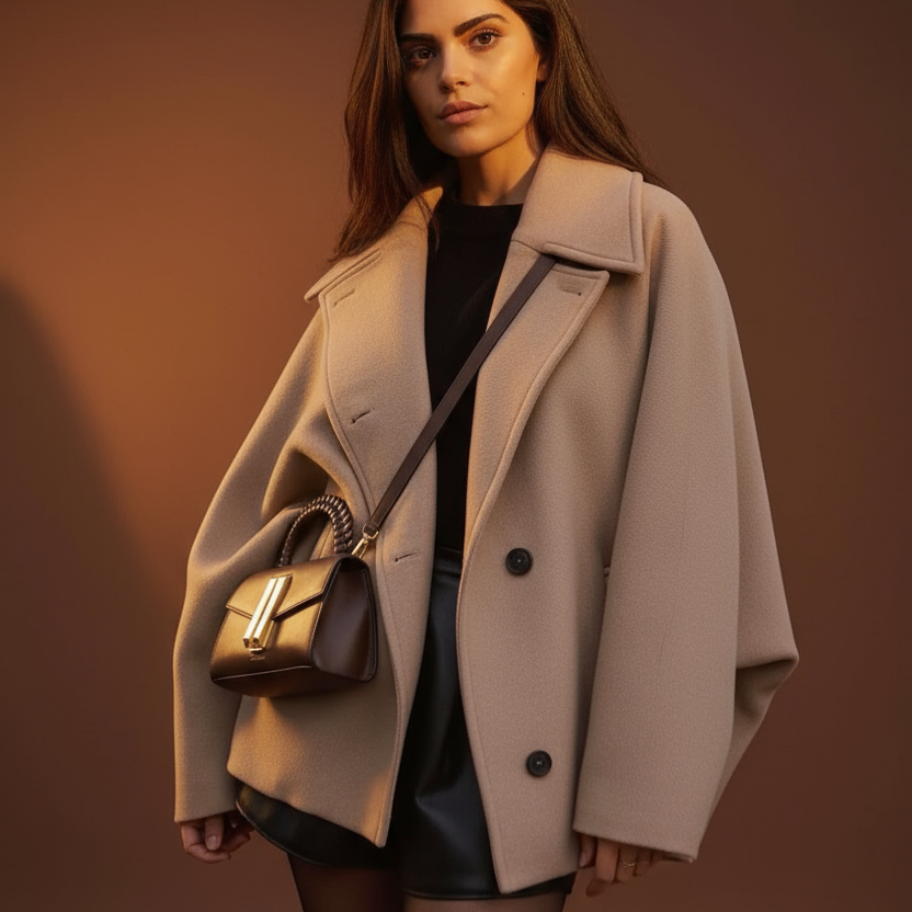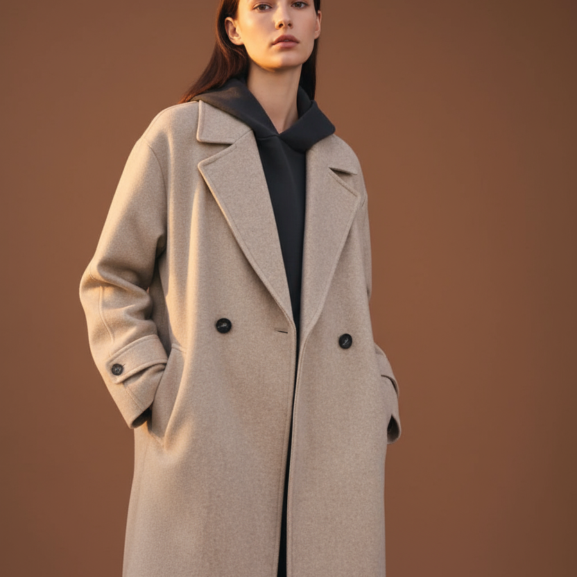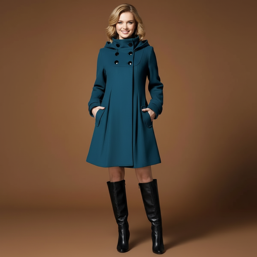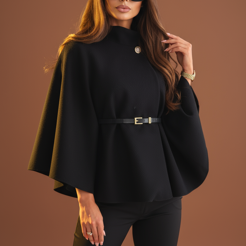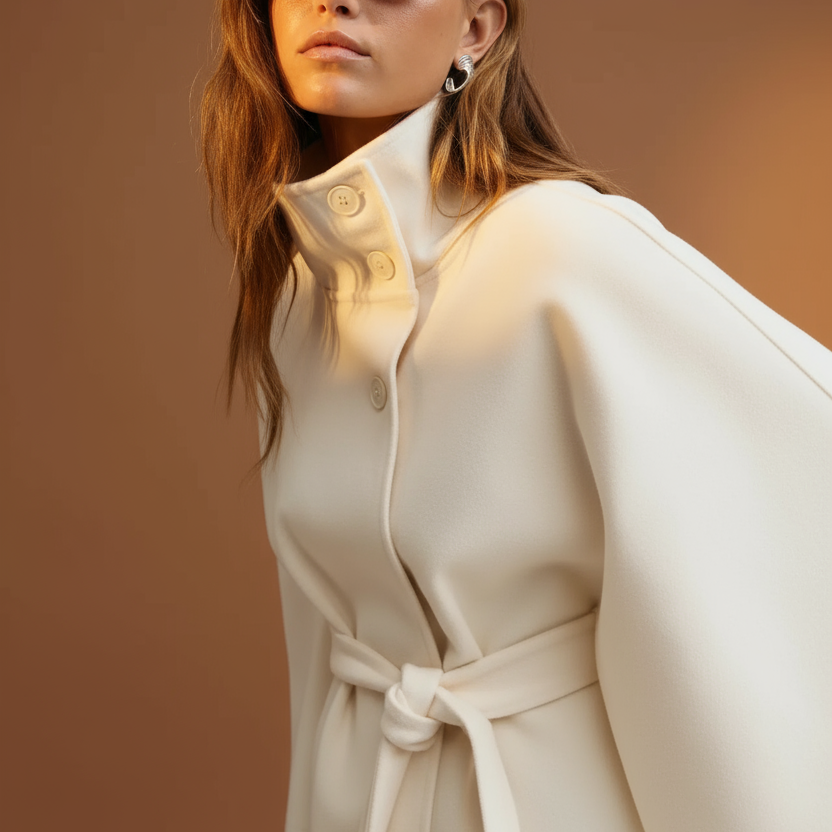 Helena - Płaszcz-kapelusz z paskiem w talii i stójką