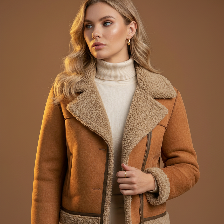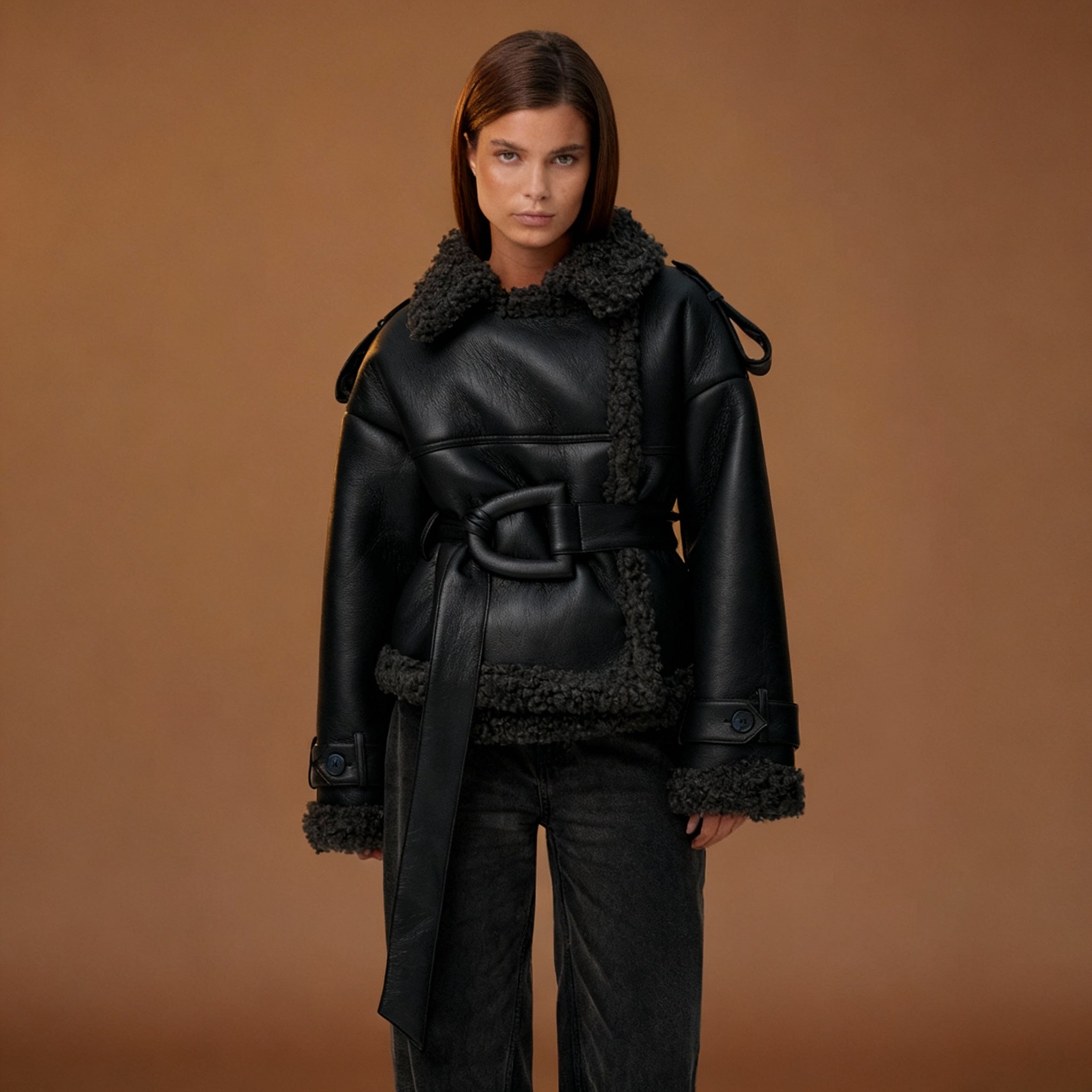 Sylwia - Płaszcz z owczej skóry z paskiem