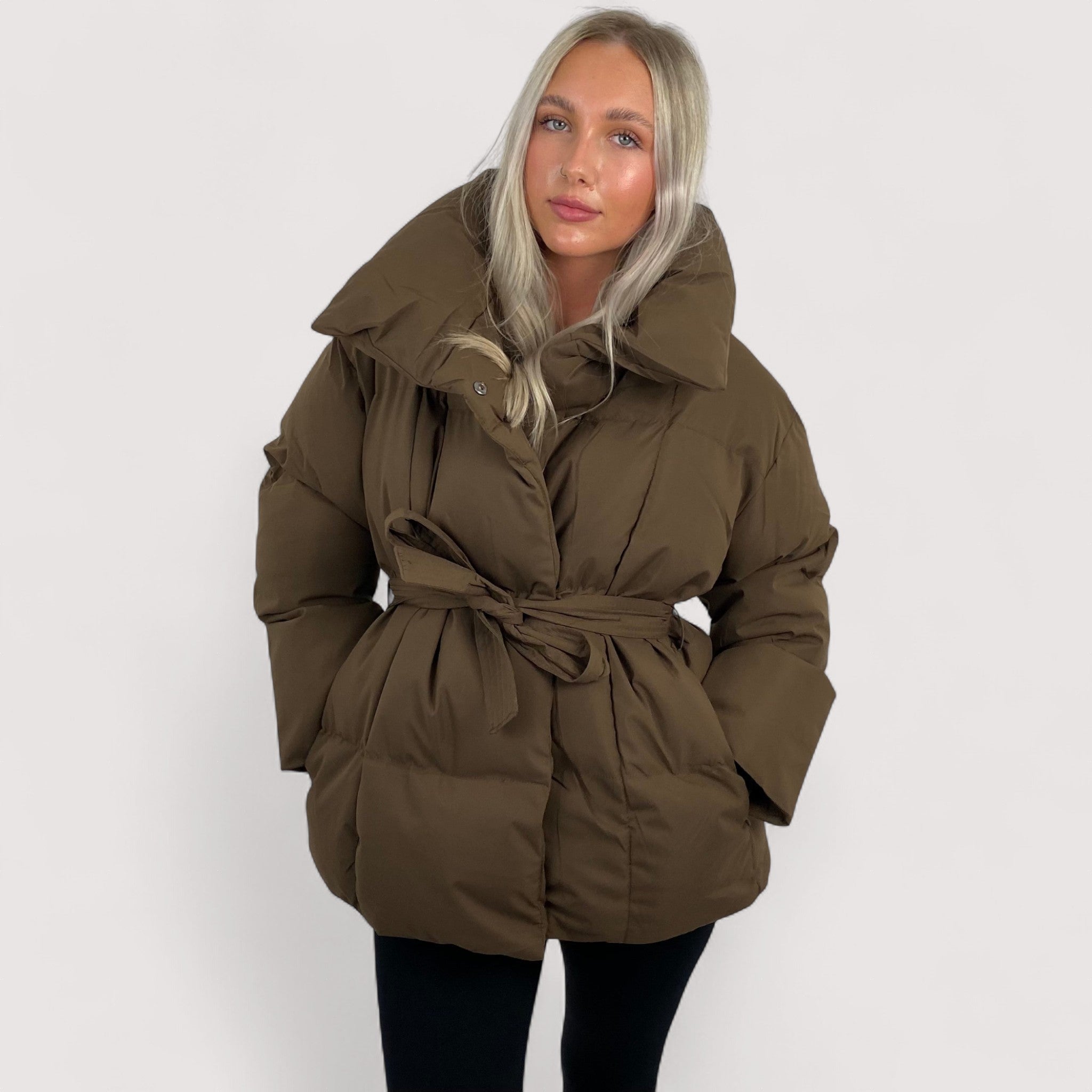 Carmen | Długi puchowy płaszcz z paskiem