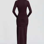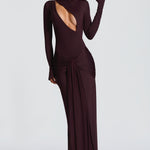 Ta elegancka sukienka została zaprojektowana dla kobiet, które chcą wyróżniać się pewnością siebie i klasą. Długa, płynna forma optycznie wysmukla sylwetkę, a strategiczne wycięcie z przodu dodaje zmysłowego, ale wciąż eleganckiego charakteru. Miękki materiał pięknie dopasowuje się do ciała, podkreślając kobiece kształty.