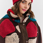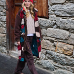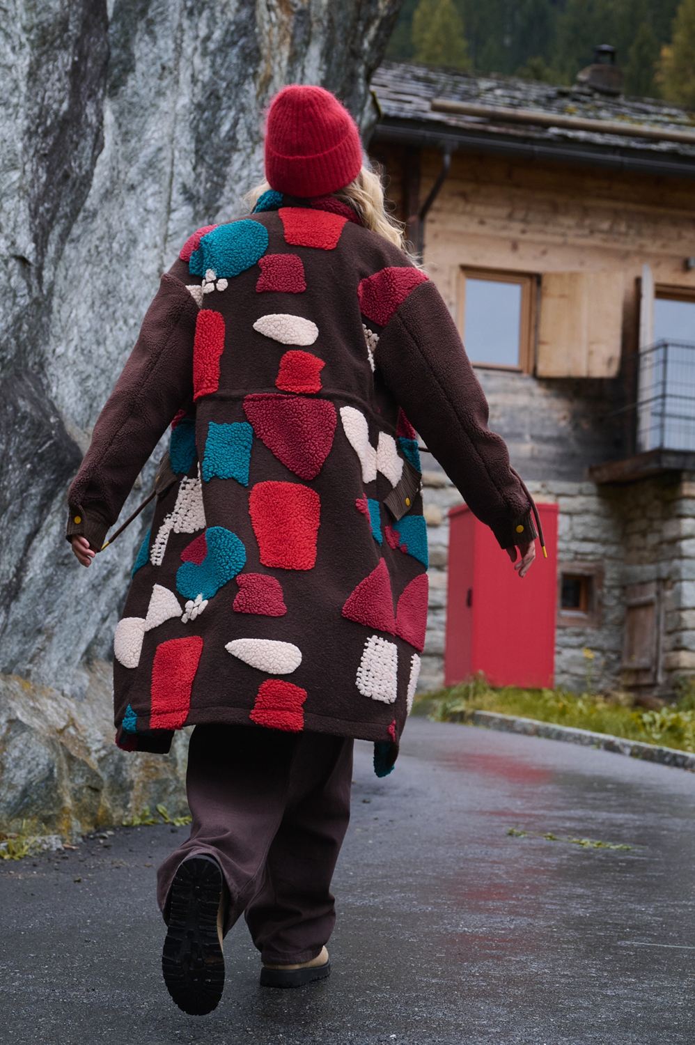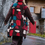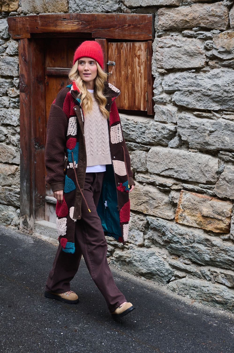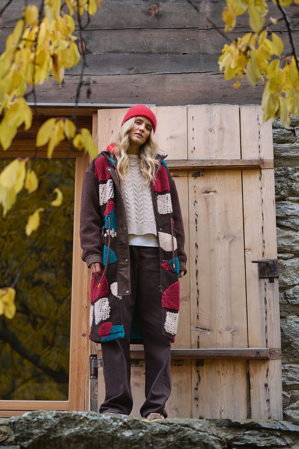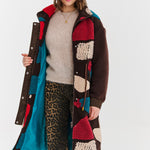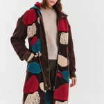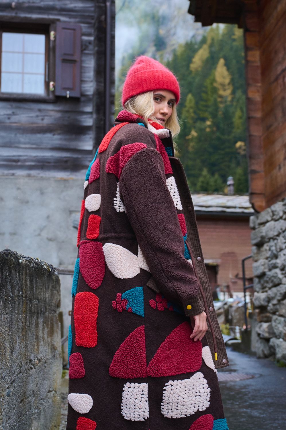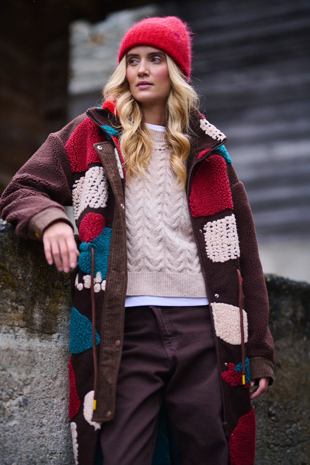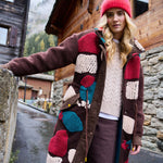 Kolorowy patchwork sprawia, że płaszcz jest niepowtarzalny.