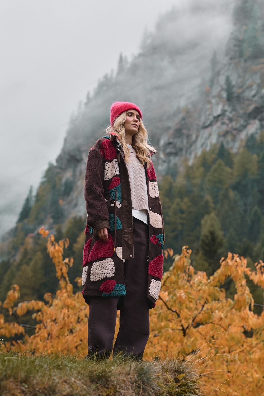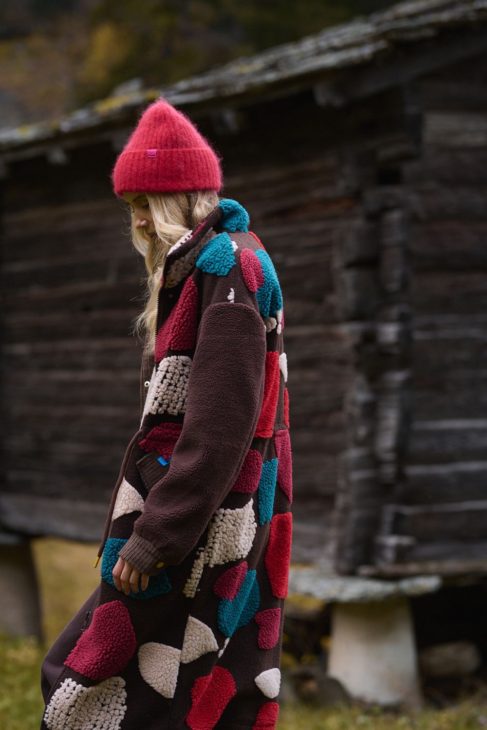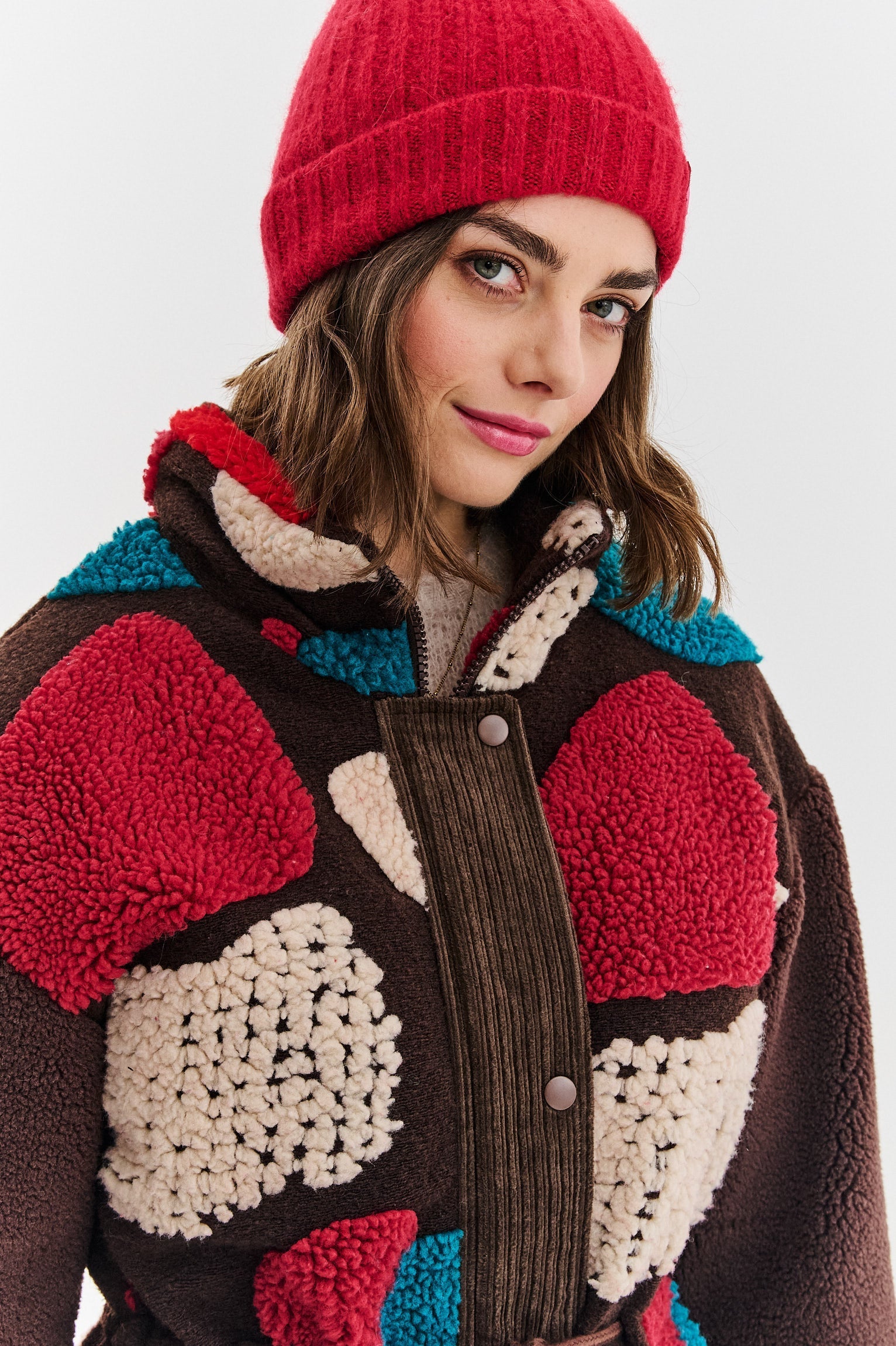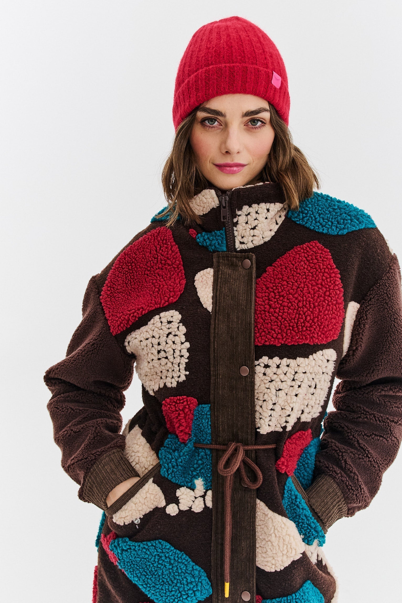 Płaszcz Teddy Jungle Confetti to prawdziwa eksplozja kolorów, faktur i oryginalności. Artystyczny patchwork w połączeniu z miękkim, przytulnym materiałem teddy tworzy wyjątkową część garderoby o silnym charakterze. Luźny krój i wydłużona forma zapewniają maksymalny komfort, a kolorowe detale nadają nowoczesnego, wyrazistego wyglądu.